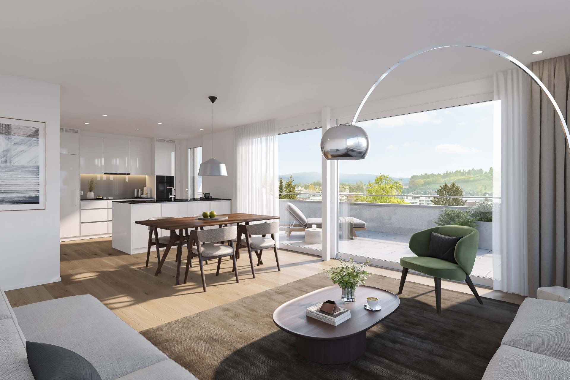 Auf den Attika-Dächern sorgt eine Photovoltaikanlage für die nachhaltige Eigenproduktion eines grossen Teils des benötigten Stroms. Dies reduziert den Energiebezug und optimiert die Betriebskosten.